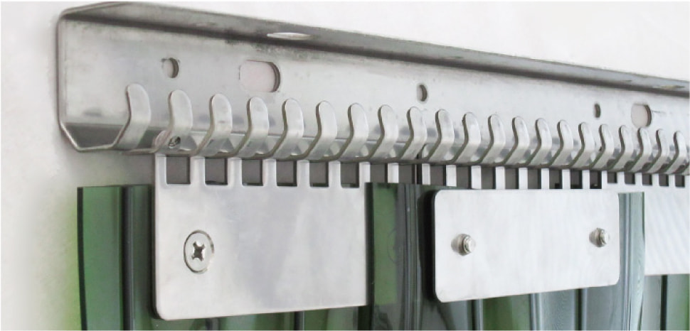 防虫目的の場合、閉め忘れや開けっ放しの無い固定タイプが基本となります。C型チャンネル、吊金具とも、ステンレスと、メッキ(スチール)の二種類からお選びいただけます。