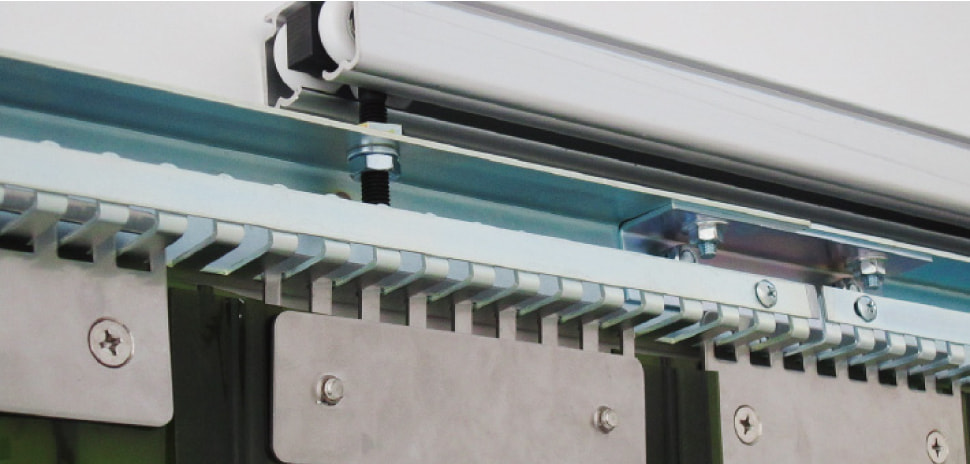 リフトや台車が通る際は、カーテン金具を折り畳んで大きく開口が取れます。
