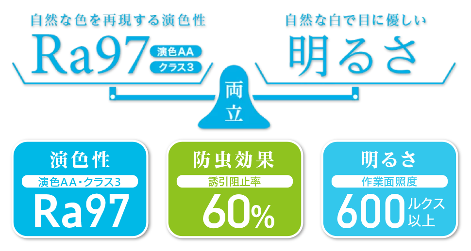 正しい色再現と防虫機能を兼ね備えたLED照明。