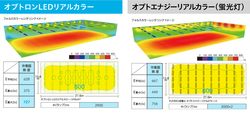 蛍光ランプのリアルカラーFLR40型2灯と同じ明るさを実現